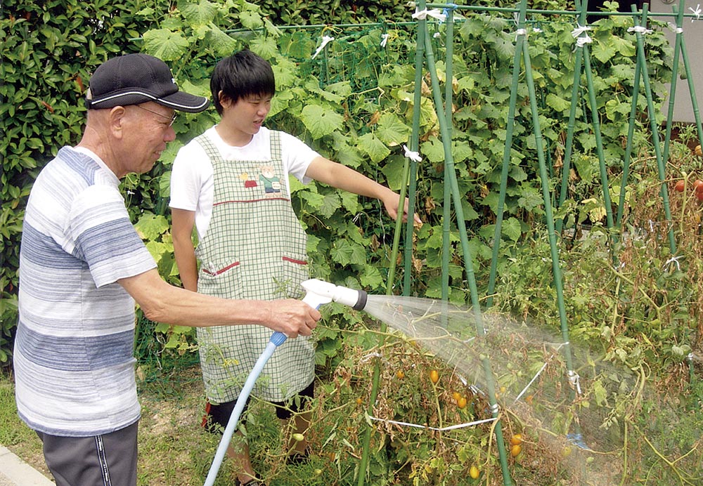 小規模多機能型居宅介護は、利用者が可能な限り自立した日常生活を送ることができるよう、利用者の選択に応じて、施設への「通い」を中心として、短期間の「宿泊」や利用者の自宅への「訪問」を組合せ、家庭的な環境と地域住民との交流の下で日常生活上の支援や機能訓練を行います。
